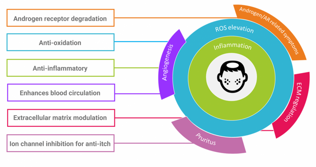 - Anti-inflammatory, anti-oxidation , and androgen receptor degradation