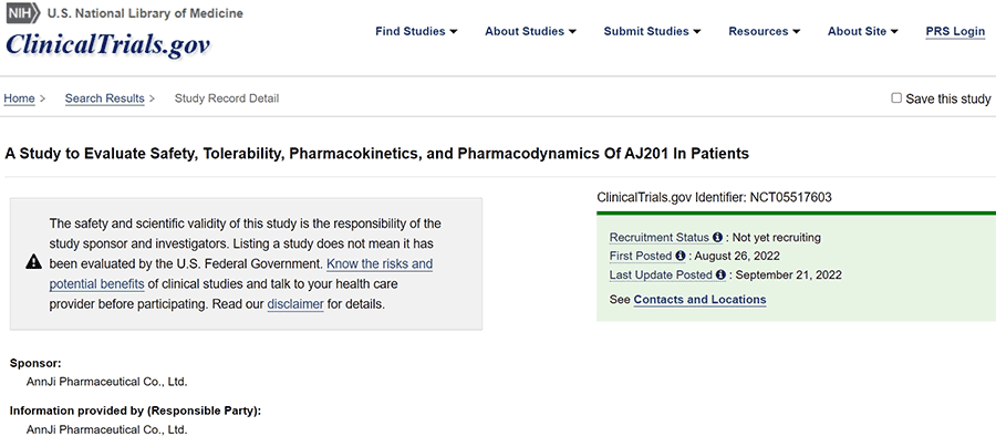 安基生技將啟動治療神經罕見疾病 (脊髓和延髓肌肉萎縮症,簡稱甘迺迪氏症) 創新小分子藥物『AJ201』之二期臨床試驗,以評估甘迺迪氏症患者服用藥物之安全性與其臨床反應。本試驗規劃於美國六個醫學中心執行,預計將於2022年12月下旬啟動受試者招募。本臨床試驗設計已於今年初送交美國FDA進行諮詢,經與美國FDA討論和審查後制定。本臨床試驗已於2022年07月正式提交美國FDA審查,並依相關規定於30天的審查期後獲准試驗執行。有關本臨床試驗更多詳細信息,請參考ClinicalTrials.gov (編號:NCT05517603)。